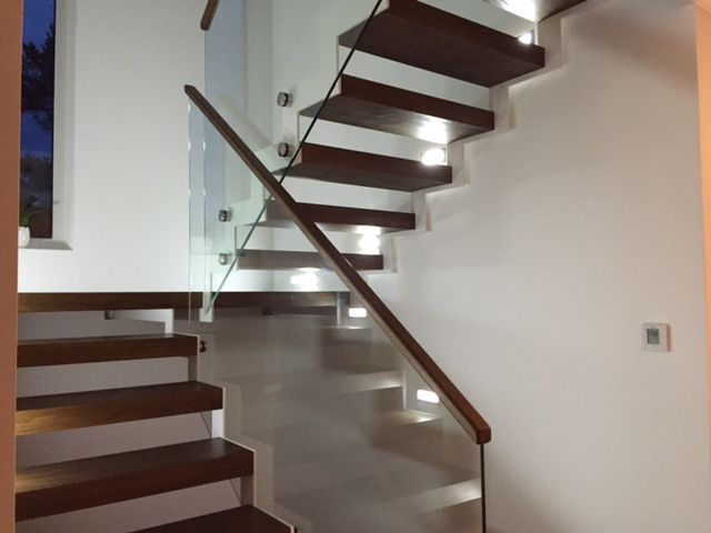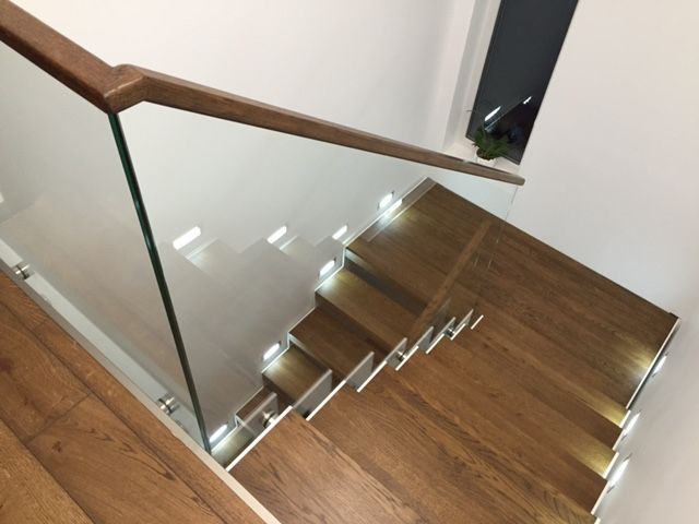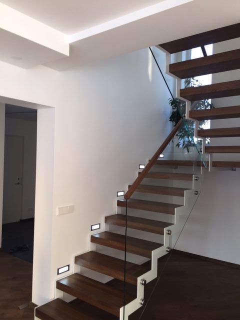 Kandekonstruktsioon 10x100 mm sik-sak teraslehest, astmed tamme liimpuidust paksusega 60 mm. Piirdeks kirgas 12 mm karastatud klaas.