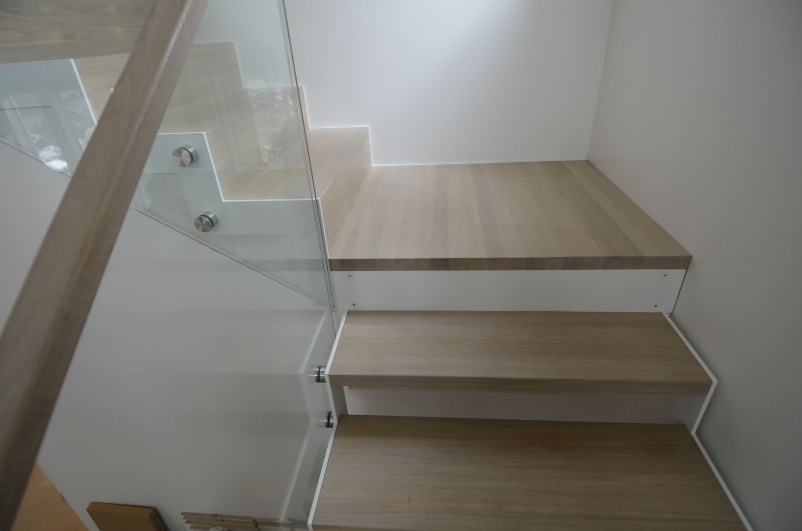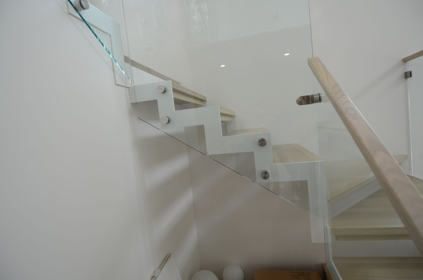 Kandekonstruktsioon 10x100 mm sik-sak teraslehest, astmed tamme liimpuidust. Piirdeks kirgas karastatud 12 mm klaas.