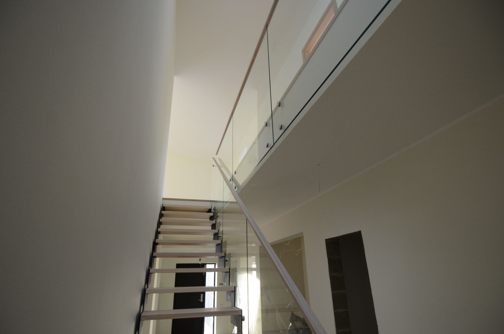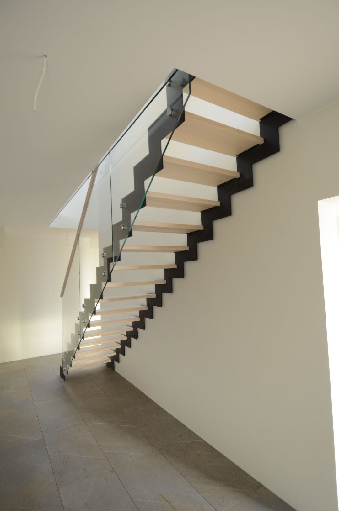 Kandekonstruktsioon 10x140 mm sik-sak teraslehest, astmed saare liimpuidus. Piirdeks kirgas karastatud 12 mm klaas, mis on kinnitatud trepi konstruktsiooni külge.