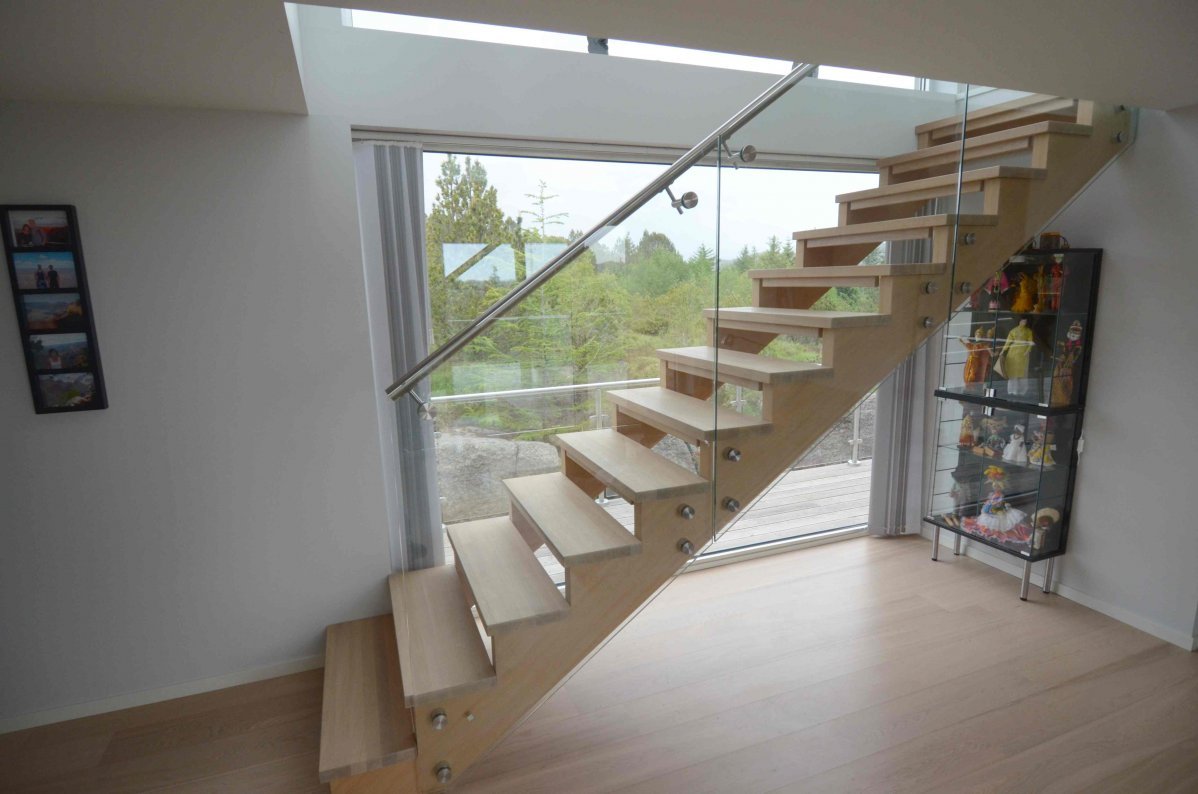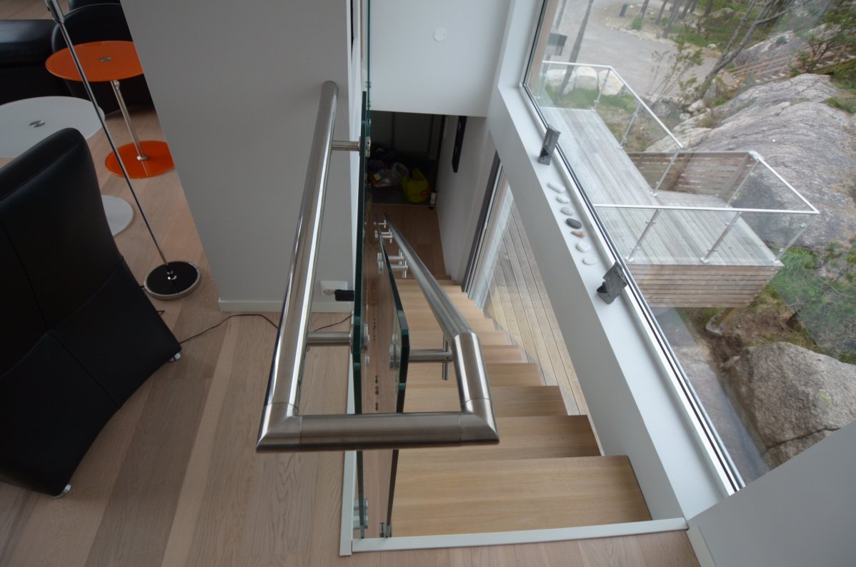 Põsepuud ristvineerist spoonitud tammespooniga, astmed tamme liimpuidust. Trepp õlitatud valge õliga