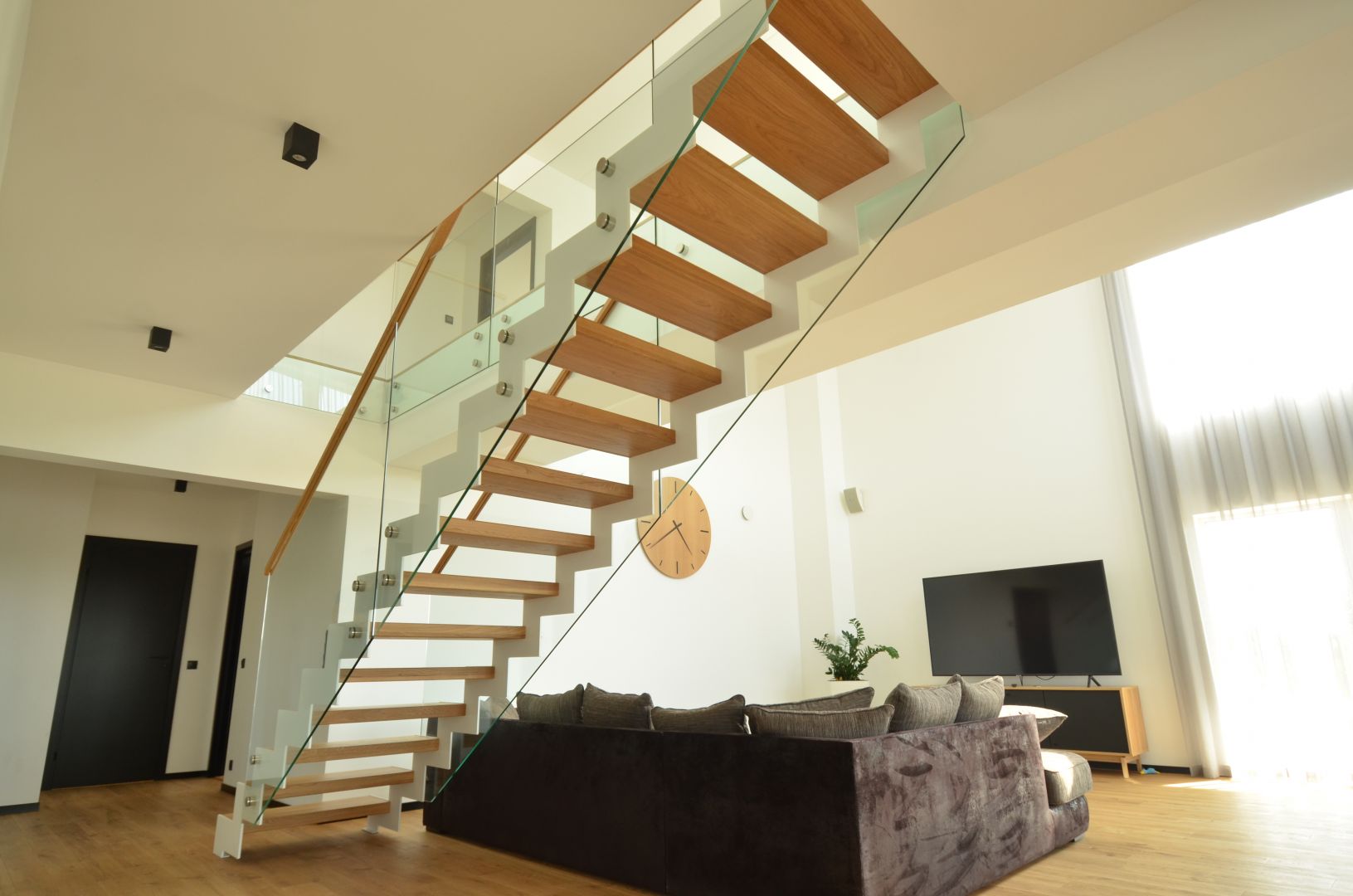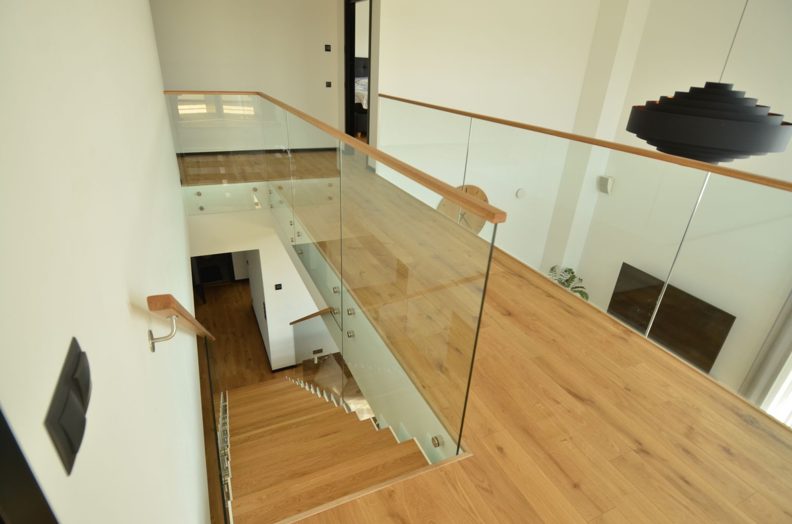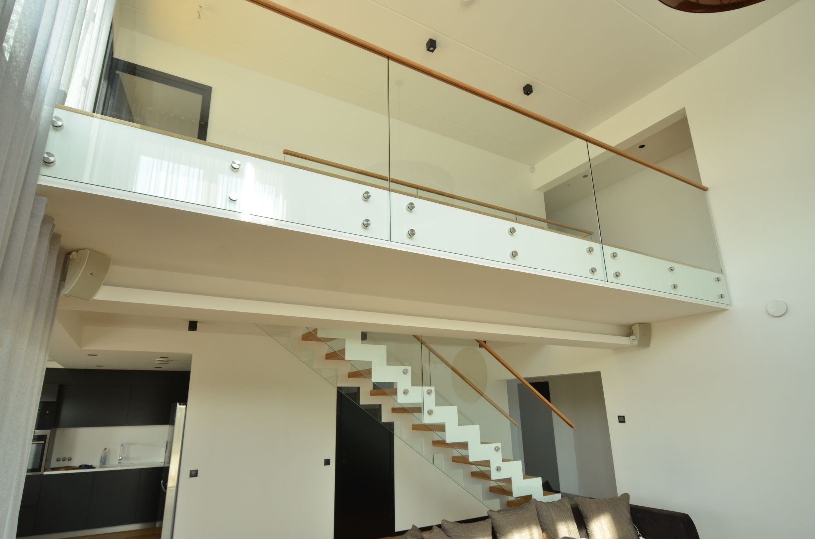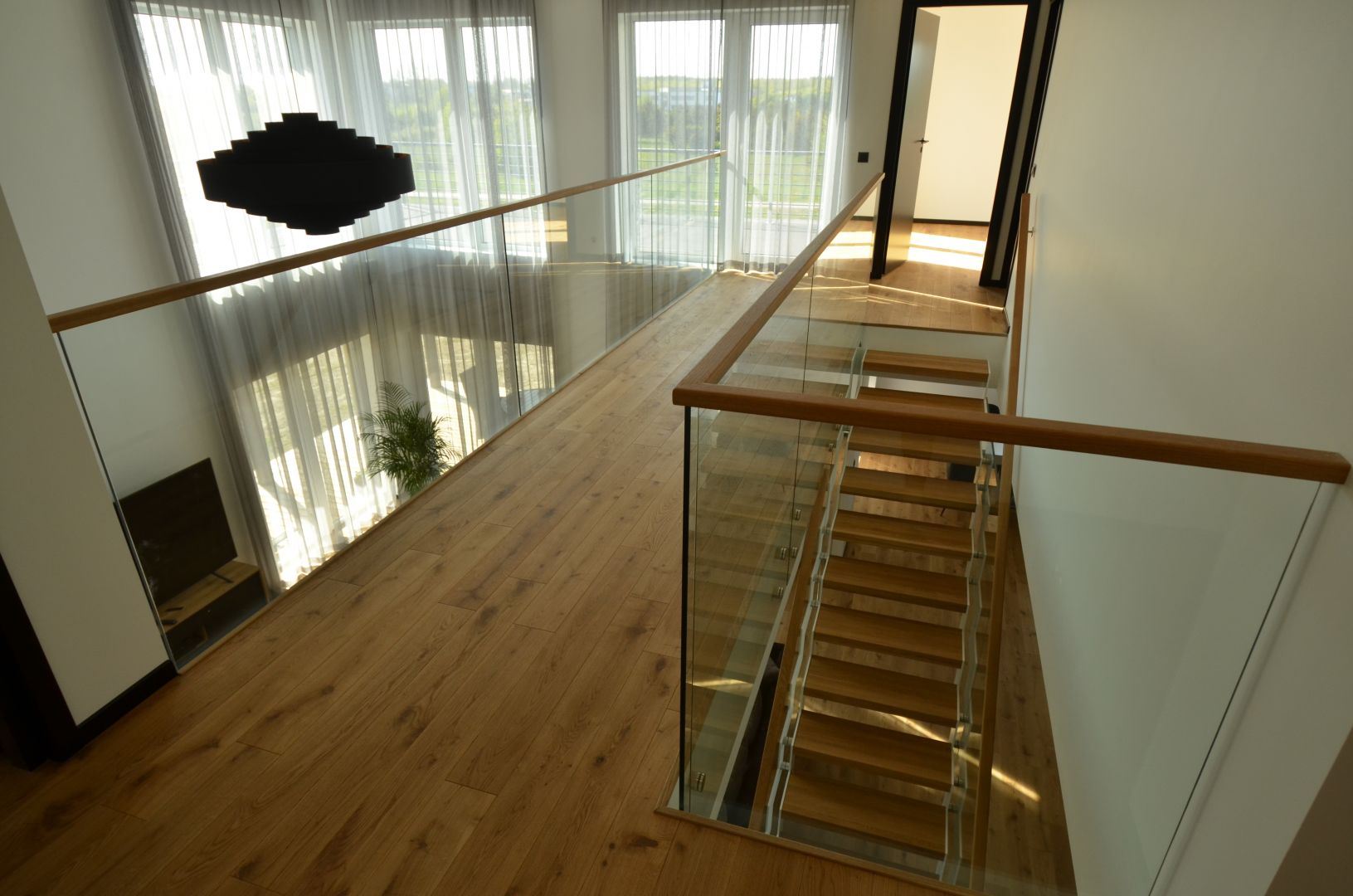 Kandekonstruktsioon 10x150 mm astmed tamme liimpuidust paksusega 60 mm ja karpastmed. piirdeks kirgas karastatud 12 mm klaas.