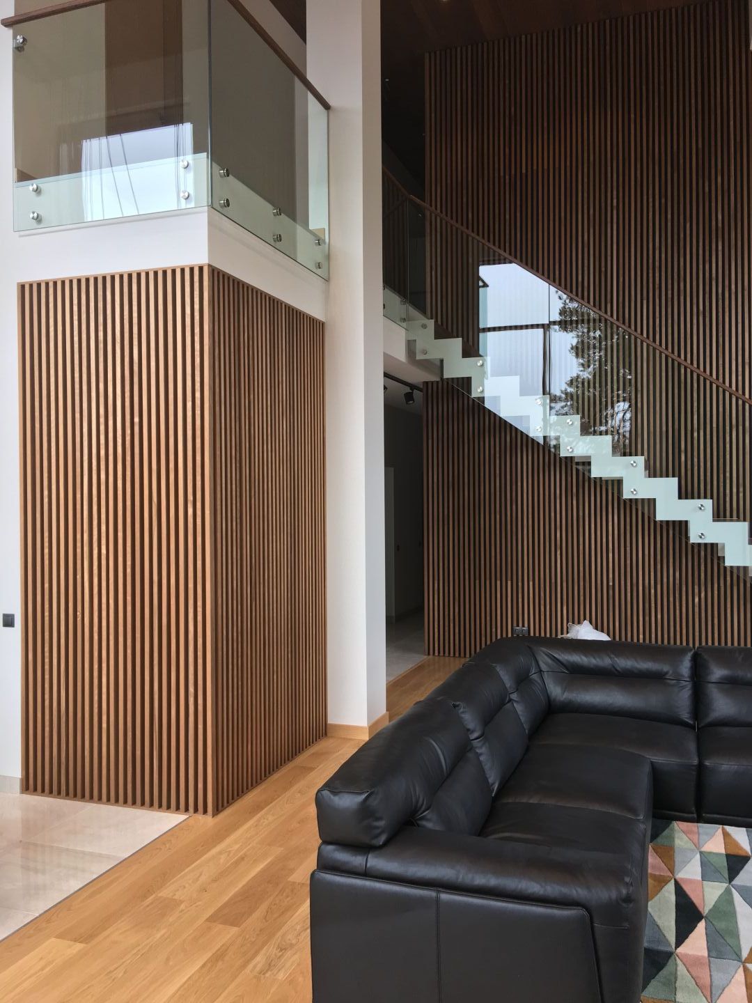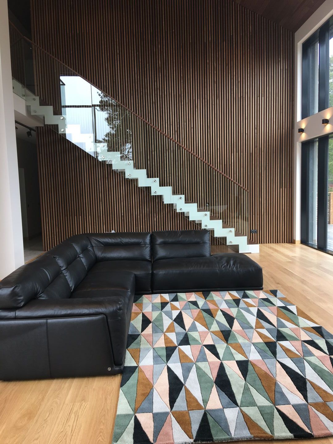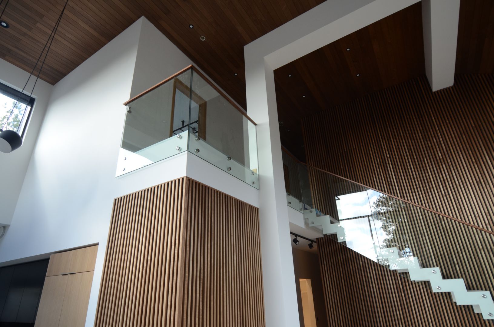 Sirge trepp, kandekonstruktsioon 10x170 mm sik-sak teraslehest. Piirdeks kirgas karastatud ja lamineeritud 6+6 mm klaas.