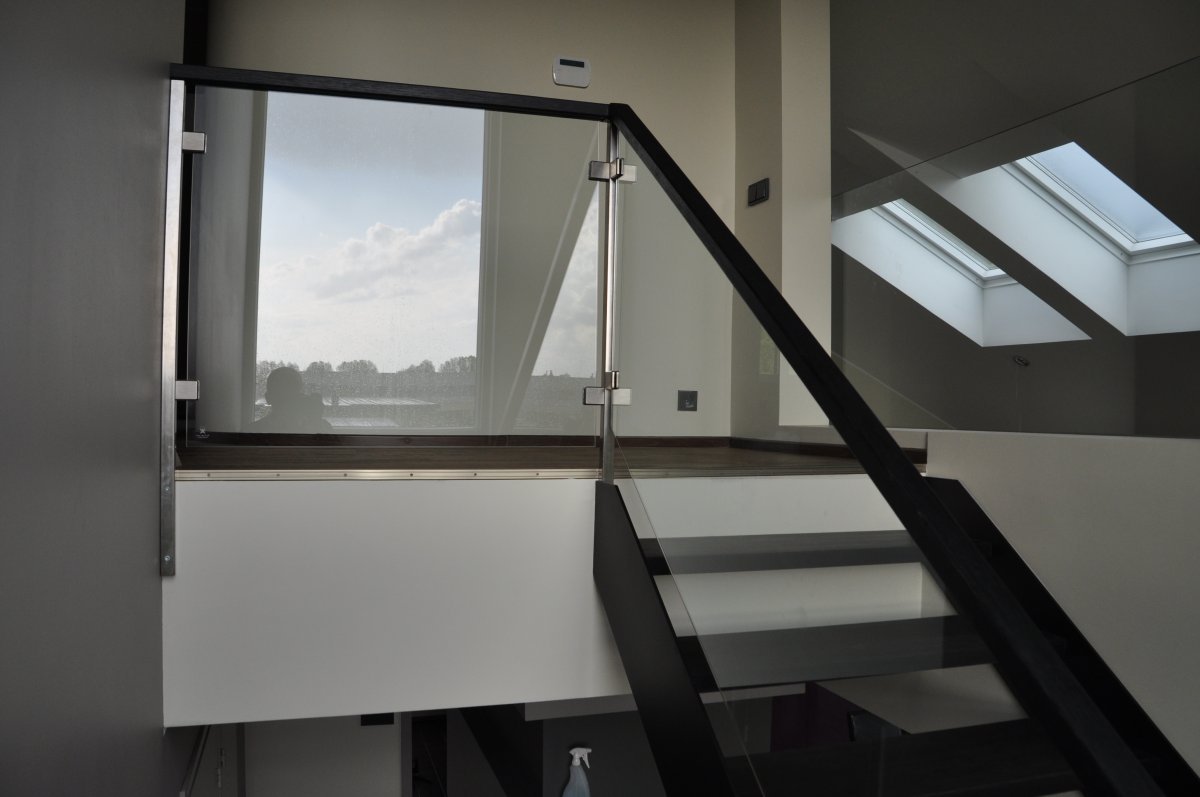 Tamme liimpuidust astmed 8x280 mm metallist lehe vahel. Piirdeks 8 mm kirgas karastatud klaas