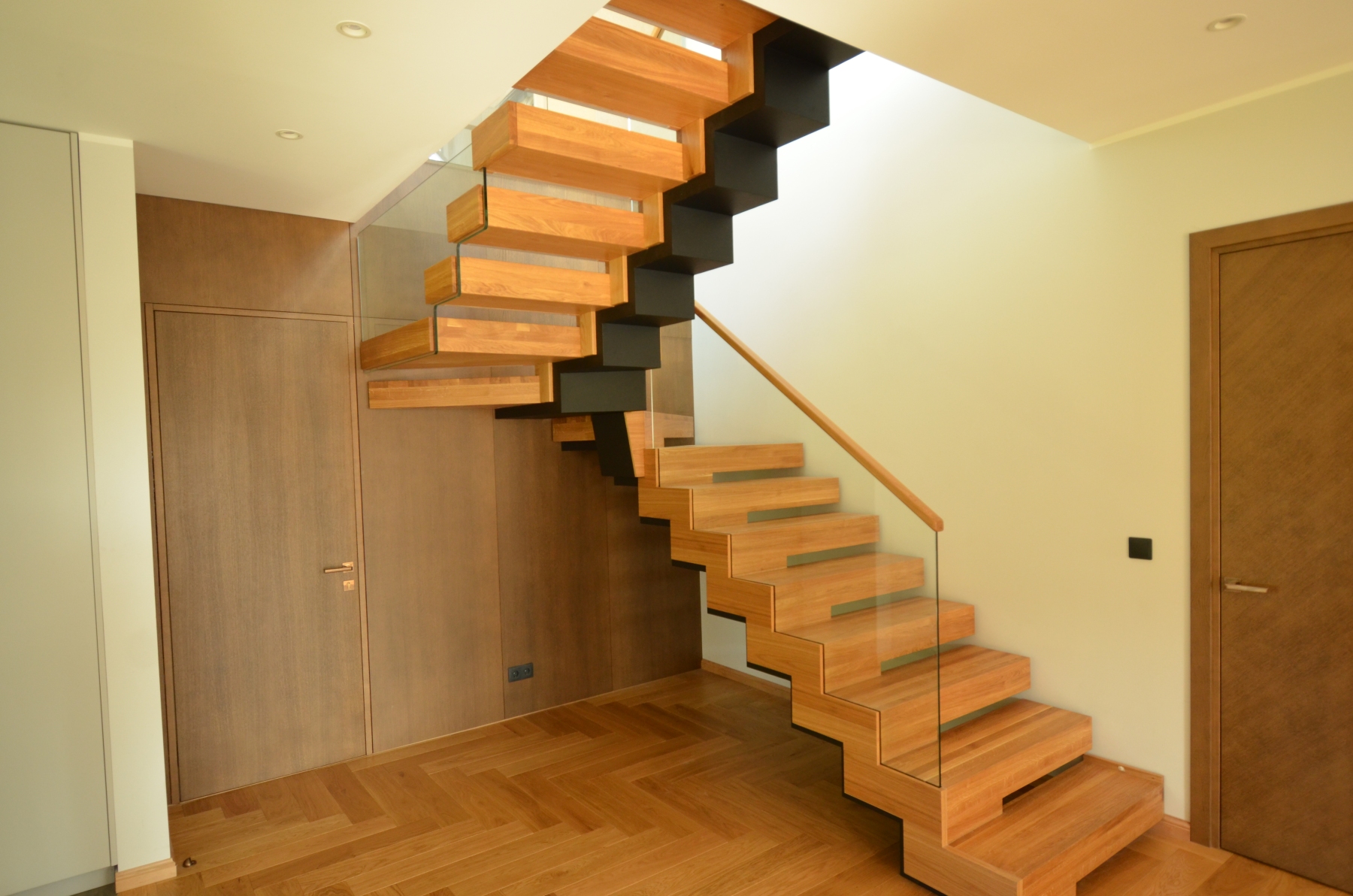 Galerii » Klaasist piiretega trepid » Teraskonstruktsiooniga trepp. Teraskonstruktsiooniga trepp. Teraskonstruktsiooniga trepp, astmed tamme liimpuidust. Piirdeks kirgas karastatud 12 mm klaas. Tagasi 386