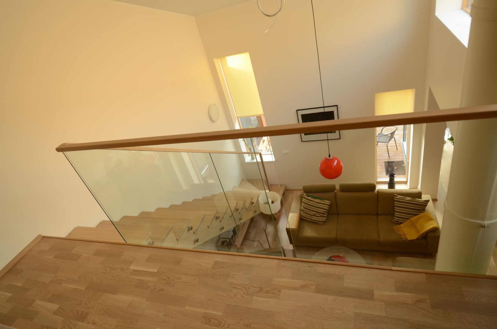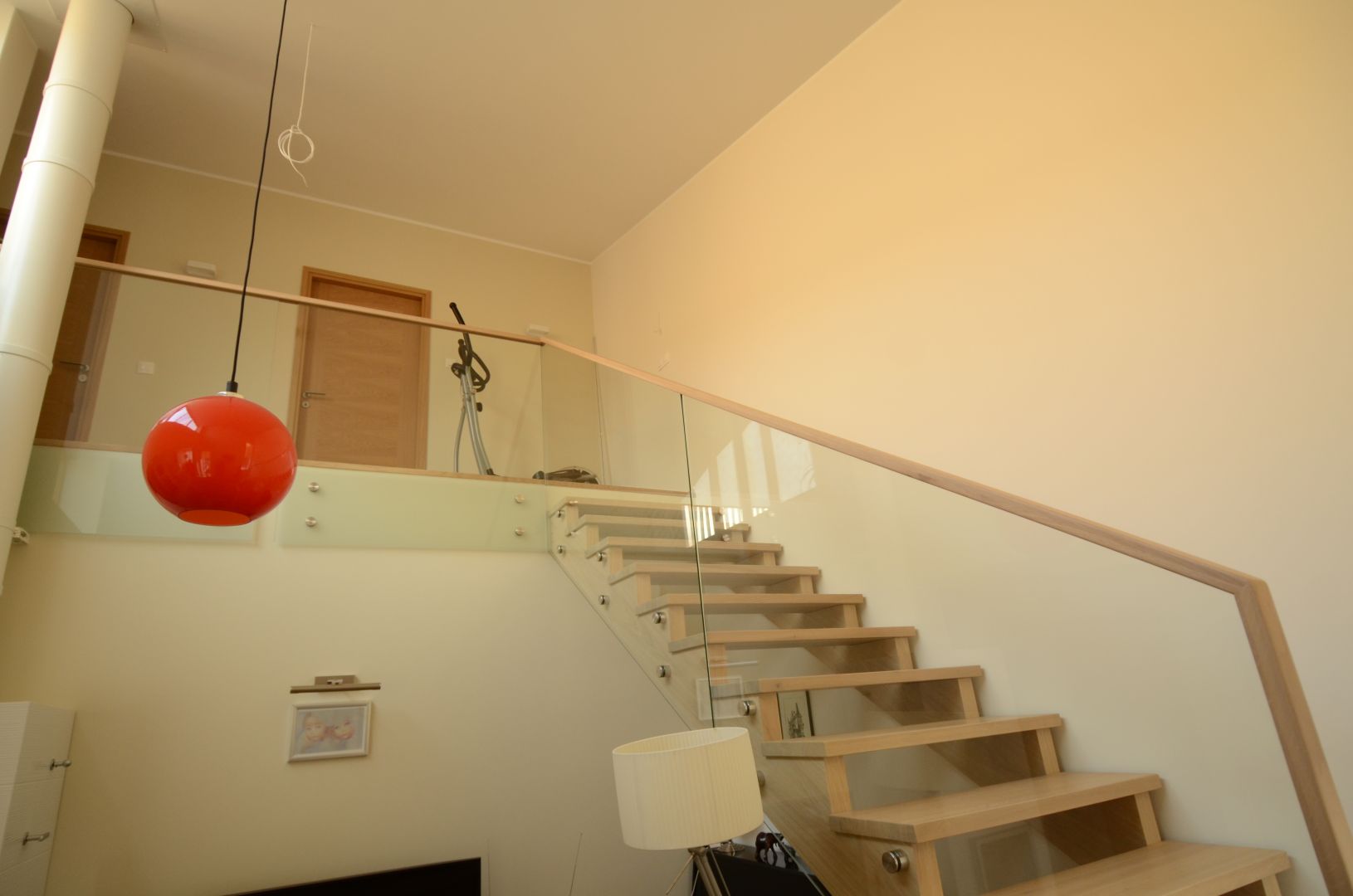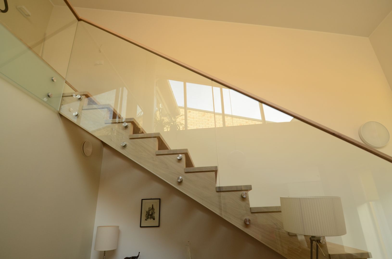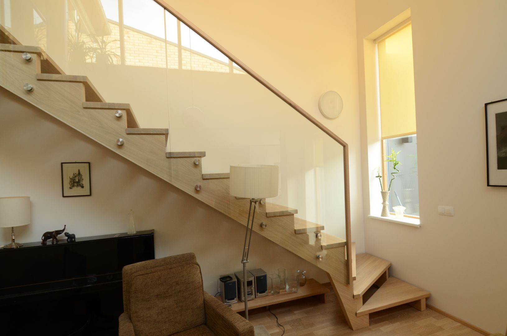 Põsepuud ristvineerist spoonitud tammespooniga. Piirdeks kirgas 12 mm karastatud klaas, klaasil peal tammest käsipuu 32x50 mm.