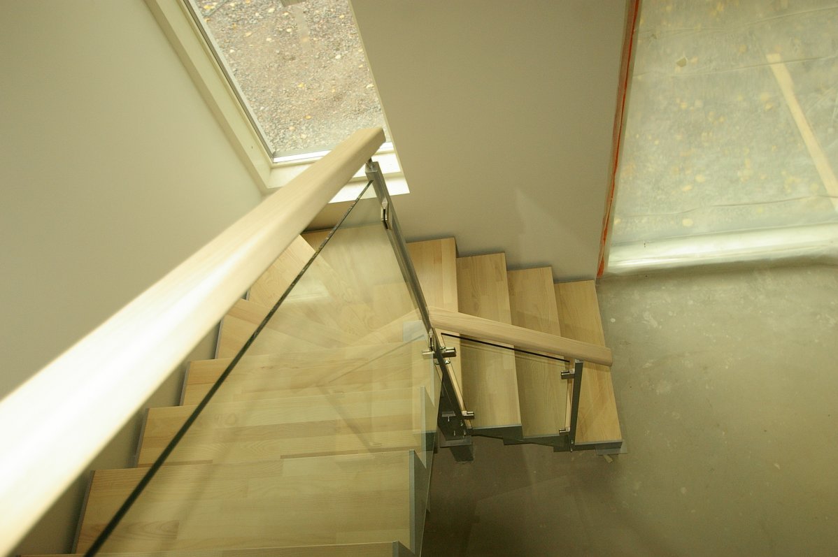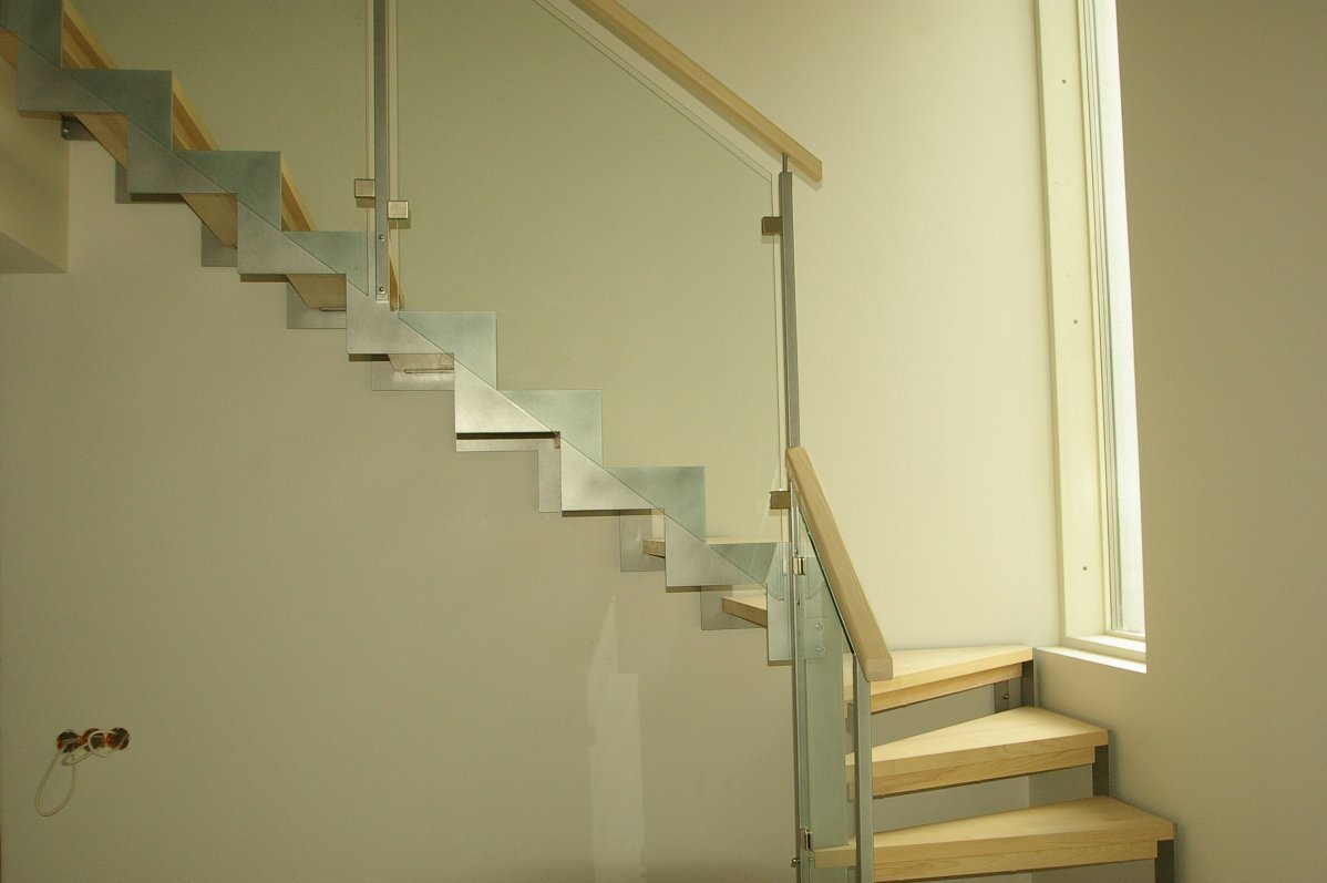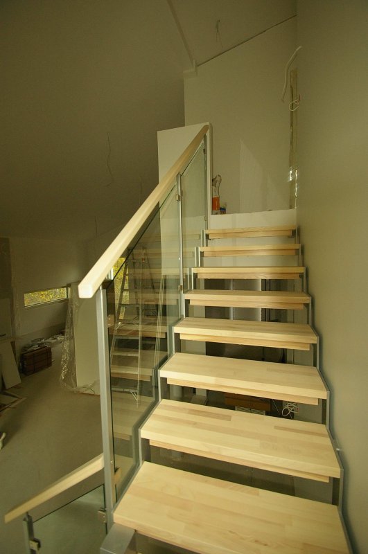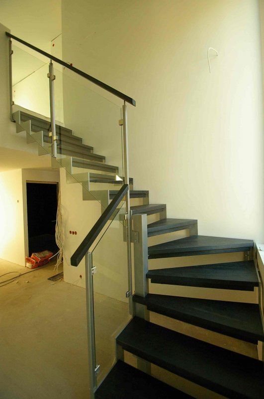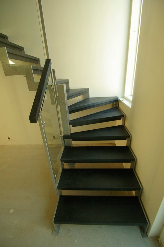 Trepi konstruktsioon 12x100 mm sik-sak metallist, astmed sõrmjätkatud saare liimpuidust, viimistletud valge/musta õliga, metall pulbervärvitud