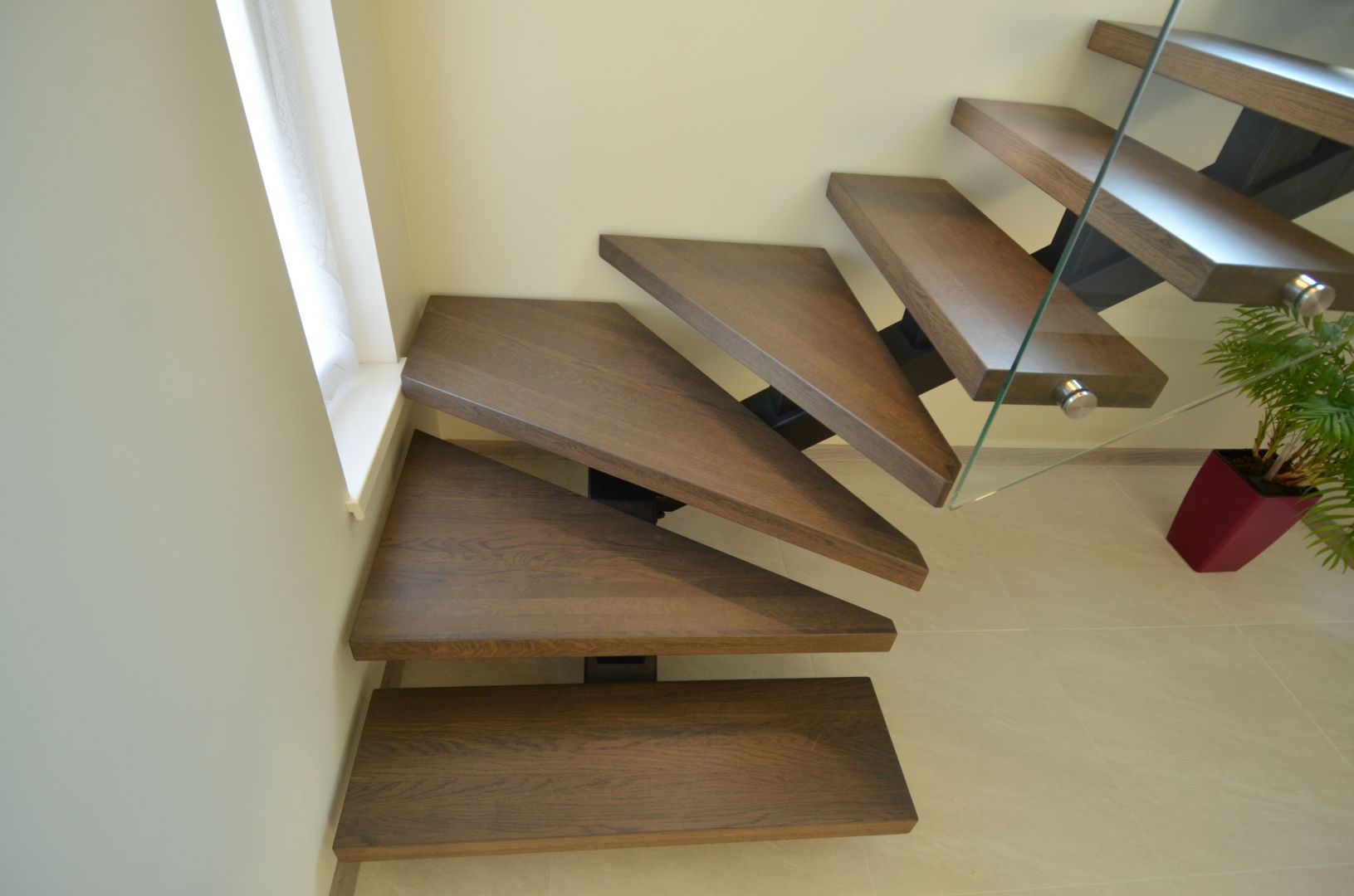 Kandekonstruktsioon 100x150 mm nelikanttorust.Astmed 57 mm paksusest tamme liimpuidust. Piirdeks kirgas 12 mm klaas.