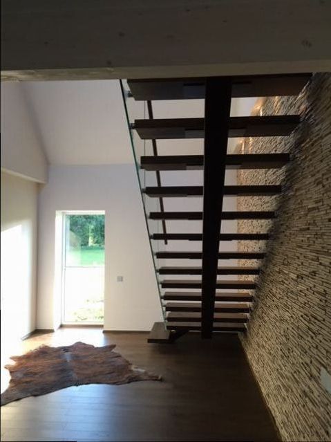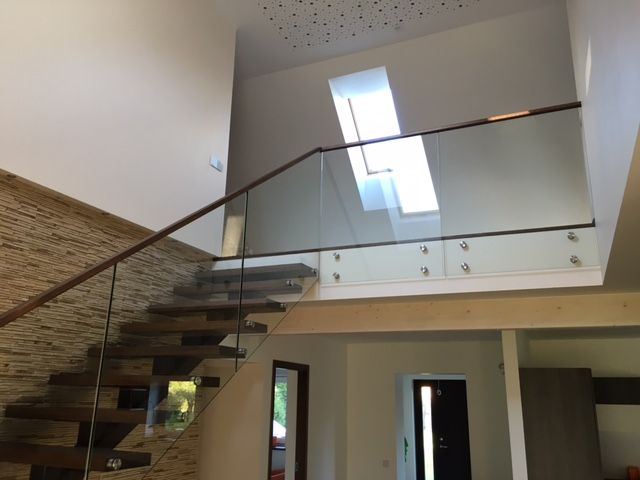 Galerii » Metallist ühetala trepid » Ühetala L-trepp Ühetala L-trepp Ühetala L-trepp. Astmed 57 mm paksusest tamme liimpuidust. Piirdeks kirgas karastatud 12 mm klaas. Tagasi 291
