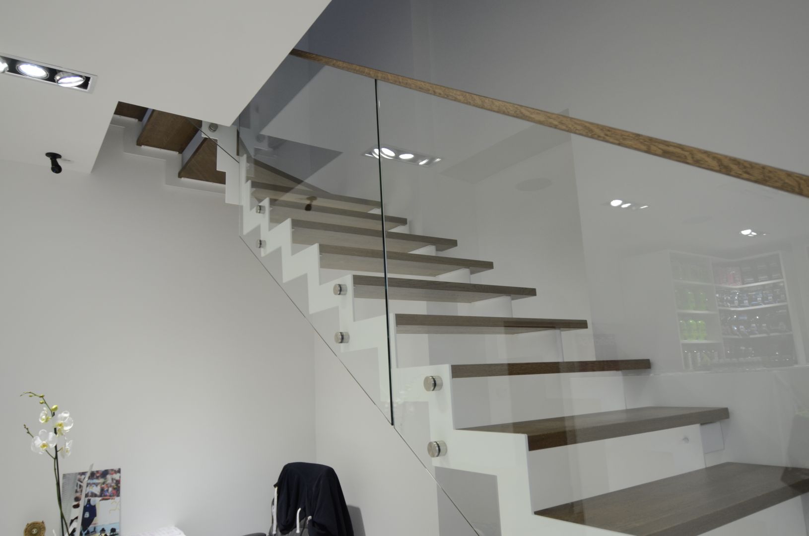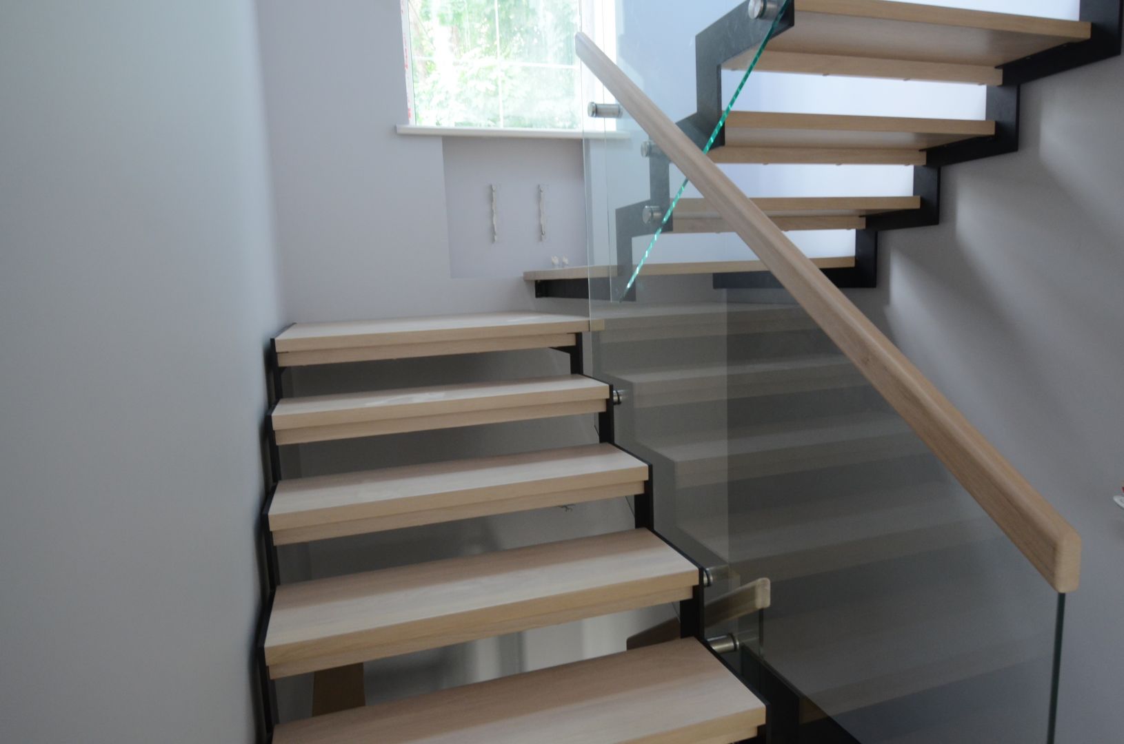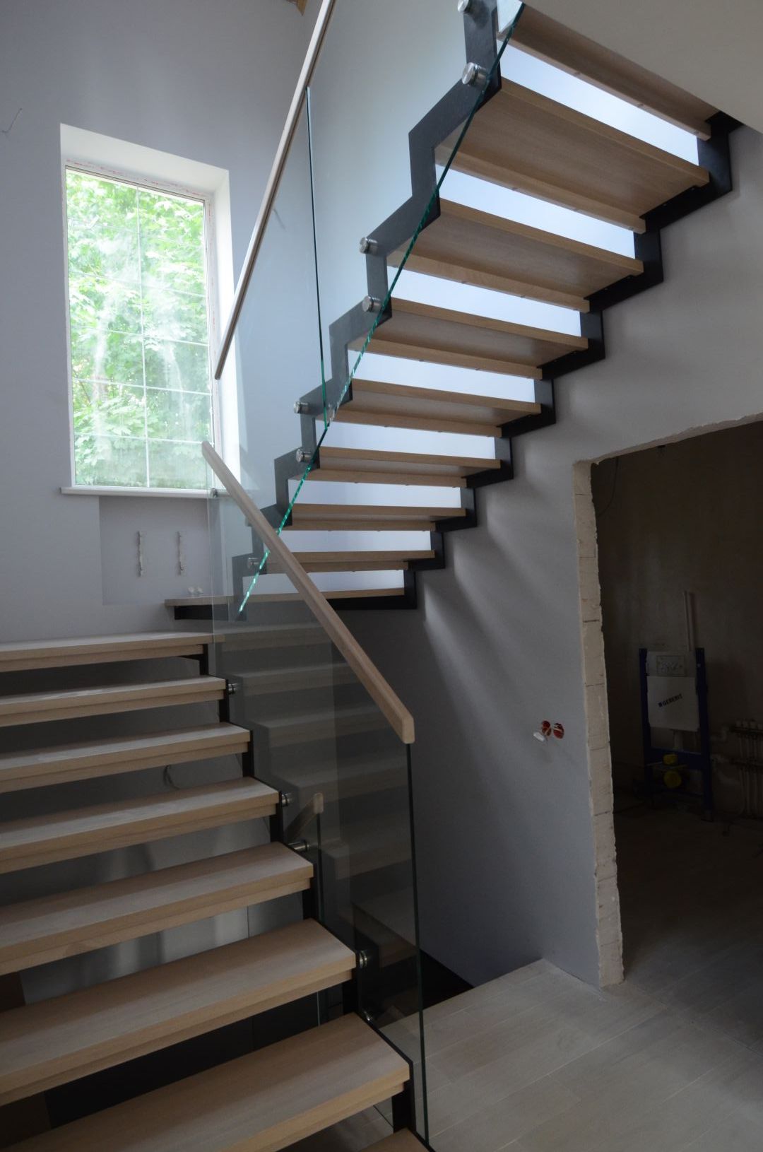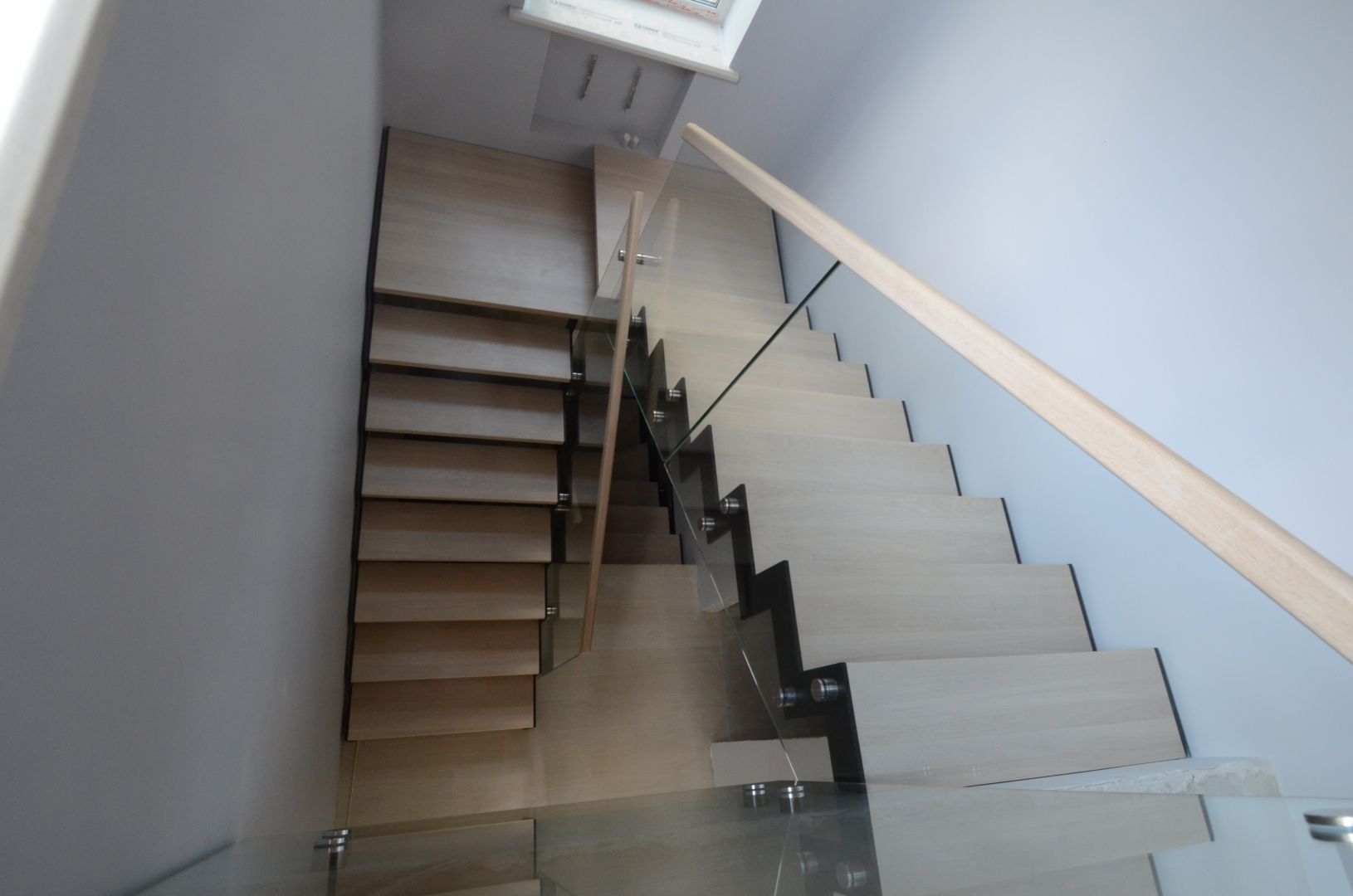 Kandekonstruktsioon 10x100 mm sik- sak teraslehest, astmed tamme liimpuidust. Piirdeks kirgas karastatud 12 mm klaas.