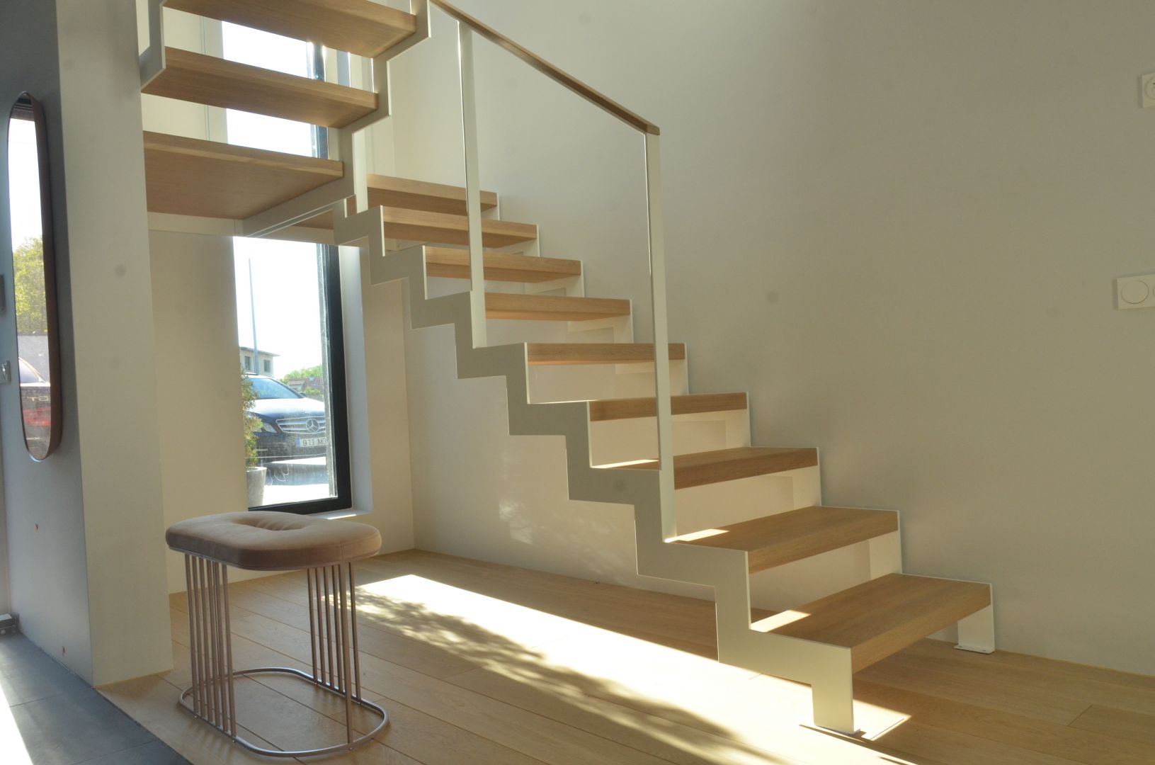 Platvormiga trepp. Kandekonstruktsioon 10x100 mm sik-sak teraslehest