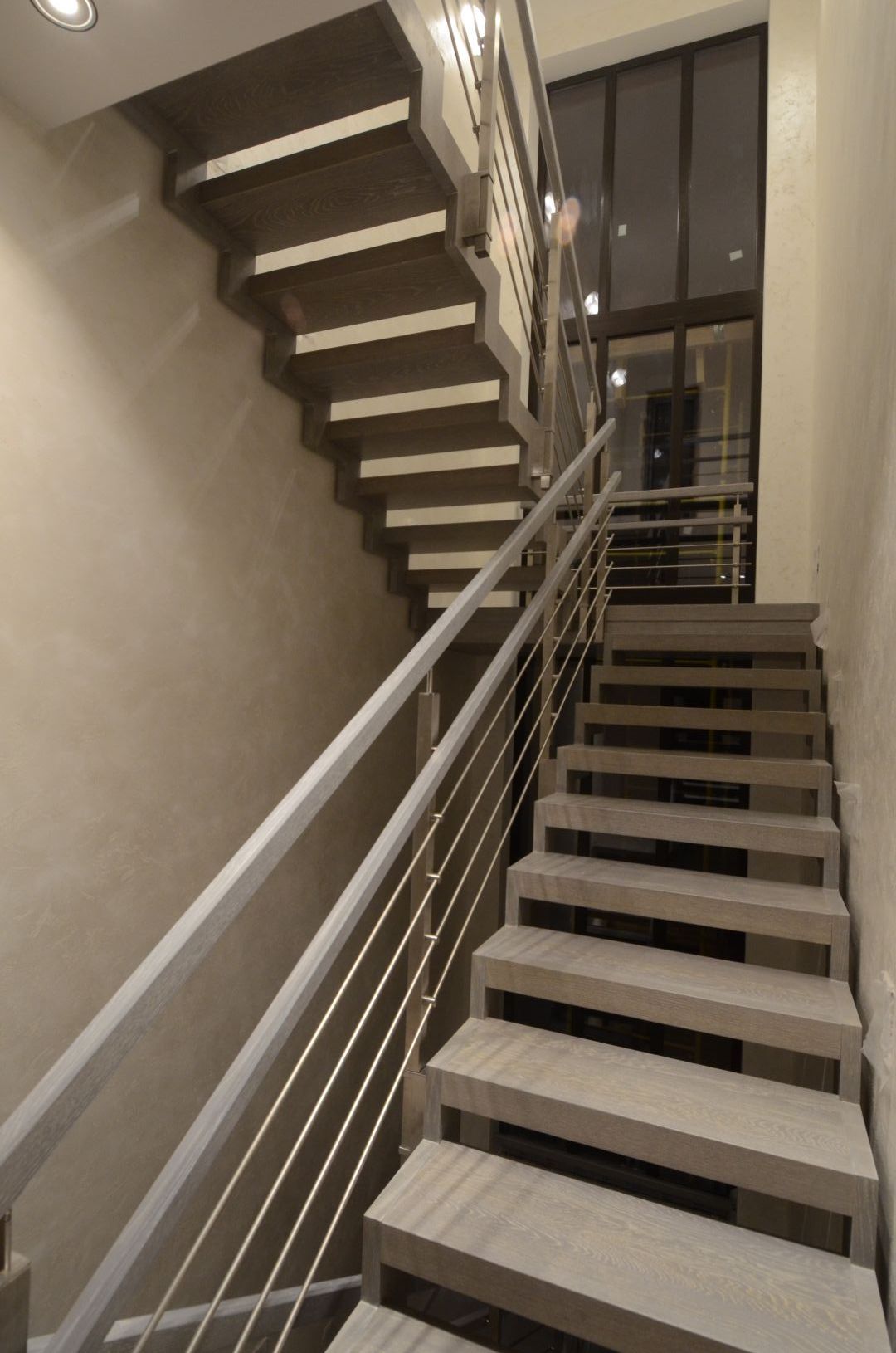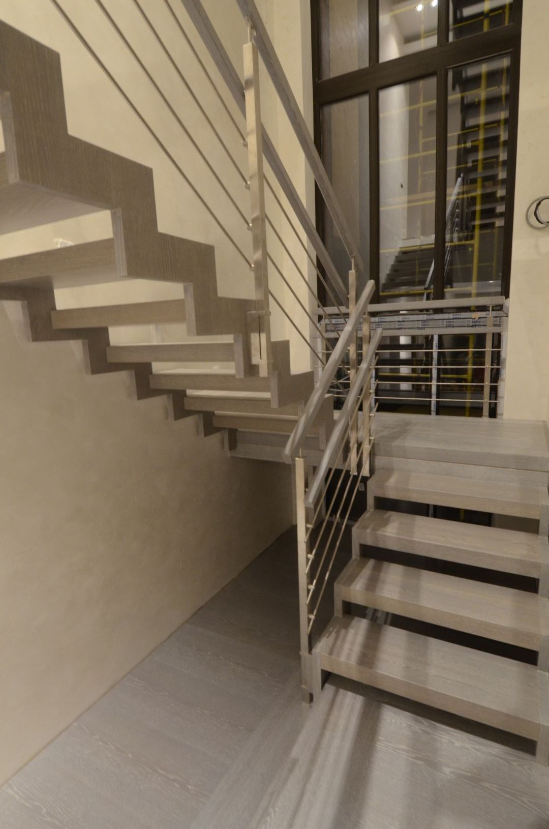 Kandekonstruktsiooniks 10x130 mm sik-sak terasleht mm terasleht kaetud ristvineeriga ja spoonitud tammespooniga. Piirdeks roostevabast trerasest 12 mm torud 40x40 mm postide vahel