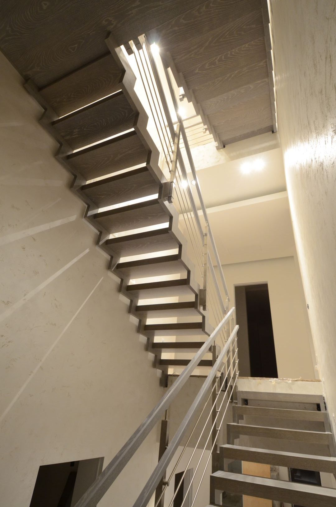 Kandekonstruktsiooniks 10x130mm sik-sak terasleht kaetud ristvineeriga ja spoonitud tammespooniga. Piirdeks roostevabast trerasest 12 mm torud, 40x40 mm postide vahel.